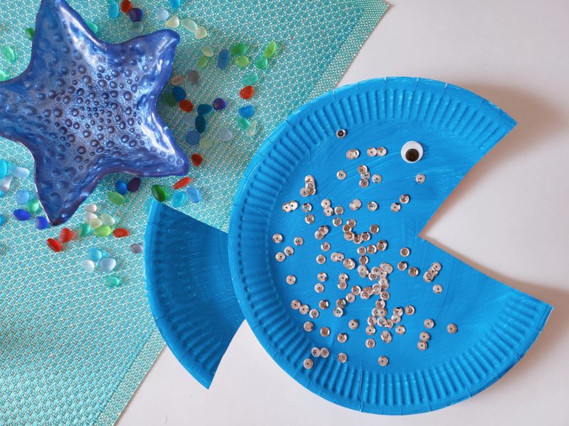Ψάρι κατασκευή από χάρτινο πιάτο με χρωματιστά λέπια