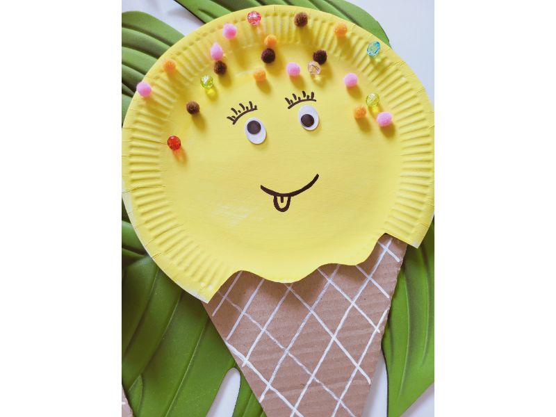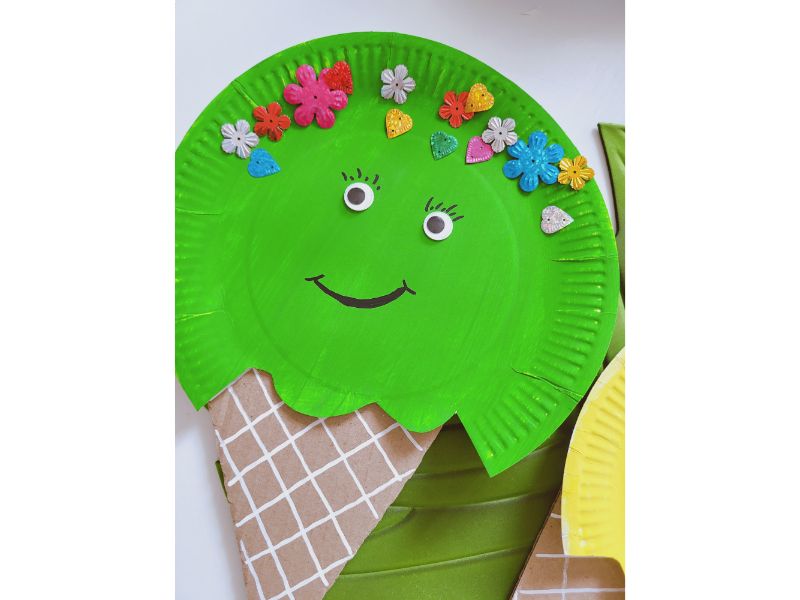 Βάφουμε τα πιάτα μας σε ότι χρώματα μας αρέσουν και αφού στεγνώσουν τα κολλάμε στα χωνάκια μας. Ζωγραφίζουμε ή κολλάμε ματάκια και στοματάκι και έπειτα στολίζουμε την κορυφή τους με υλικά χειροτεχνίας.